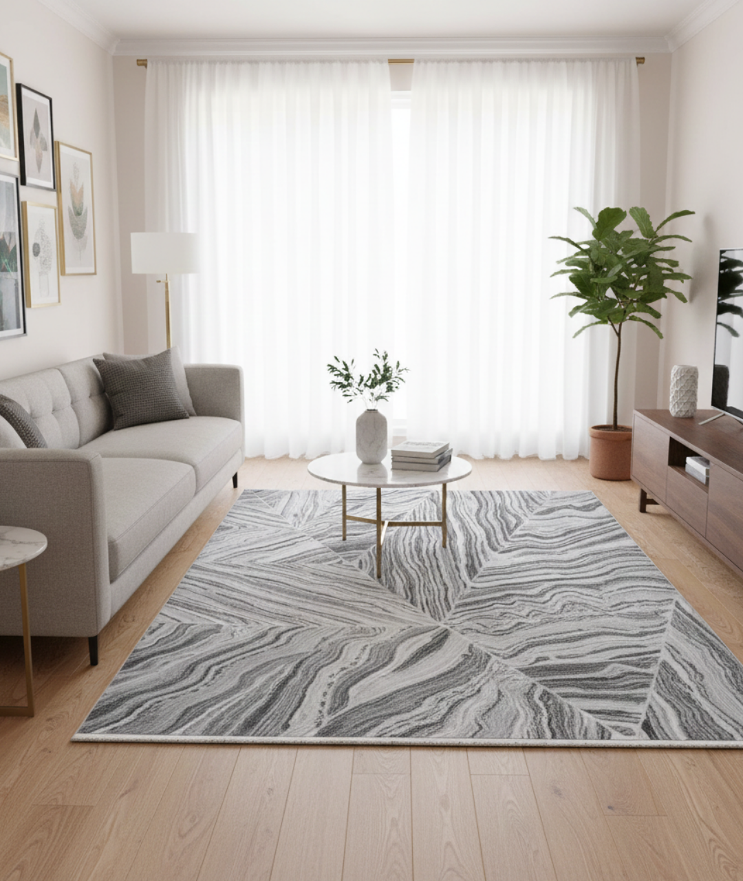 Perfect for modern and contemporary interiors, this rug combines elegance with comfort. Its neutral grey tones and gentle wave motifs make it a versatile piece that enhances living rooms, bedrooms, or lounges with understated sophistication.