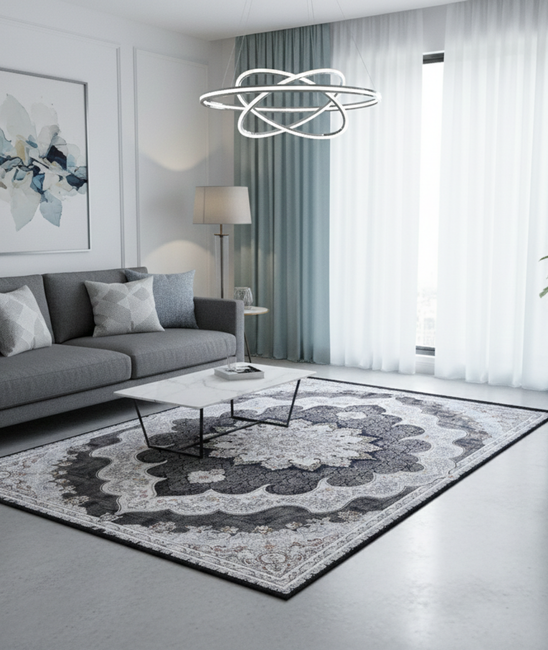 Crafted with premium materials, the rug offers a soft, comfortable texture underfoot and long-lasting durability. Its timeless design and elegant color combination make the Sultani Rug a perfect addition to elevate the aesthetic of any living space with subtle sophistication and charm.
