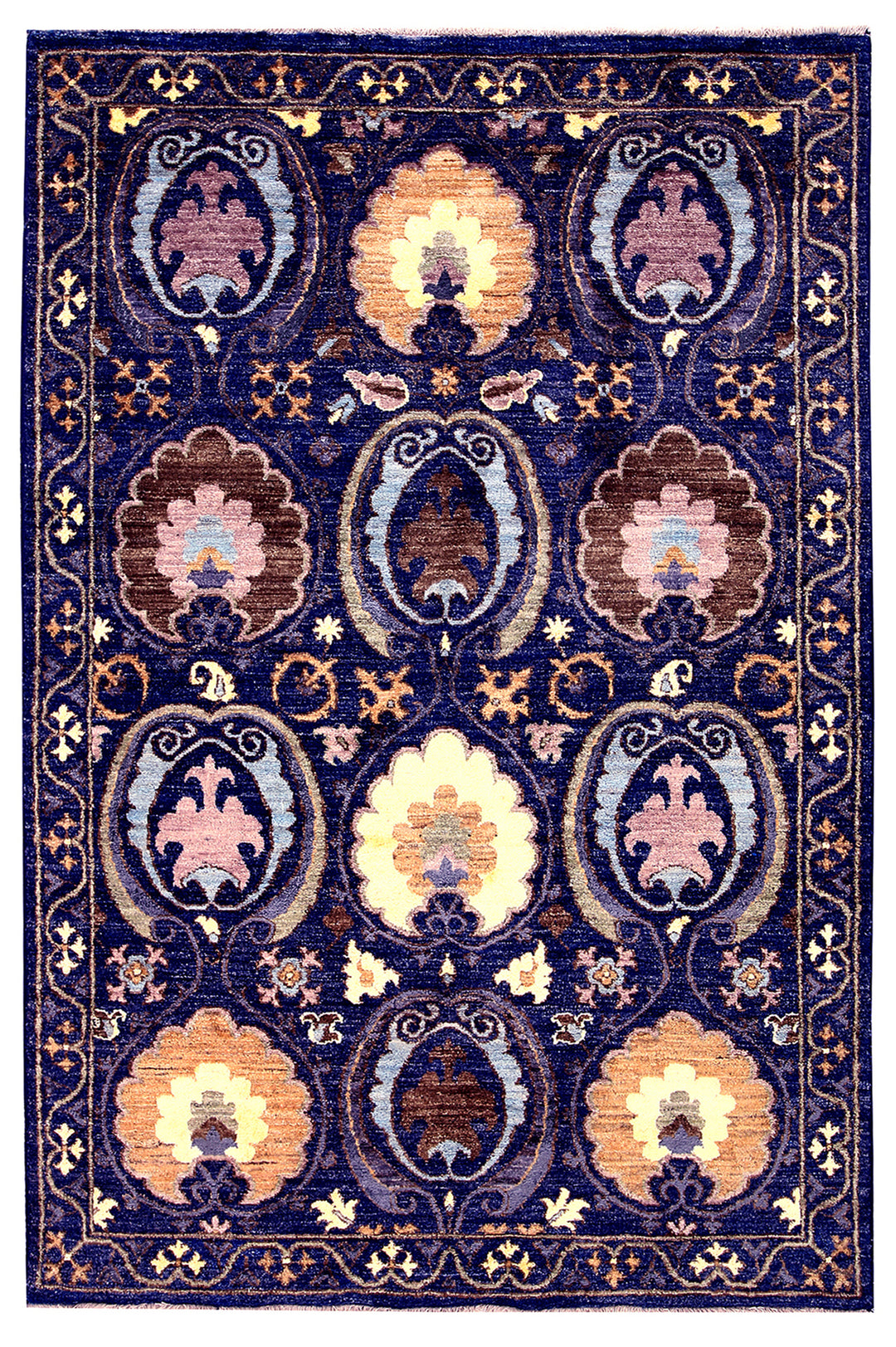 The Suzani Handmade Rug is a masterpiece of traditional Central Asian artistry. Carefully handcrafted by skilled artisans, it features intricate patterns and motifs that reflect rich cultural heritage and attention to detail.
