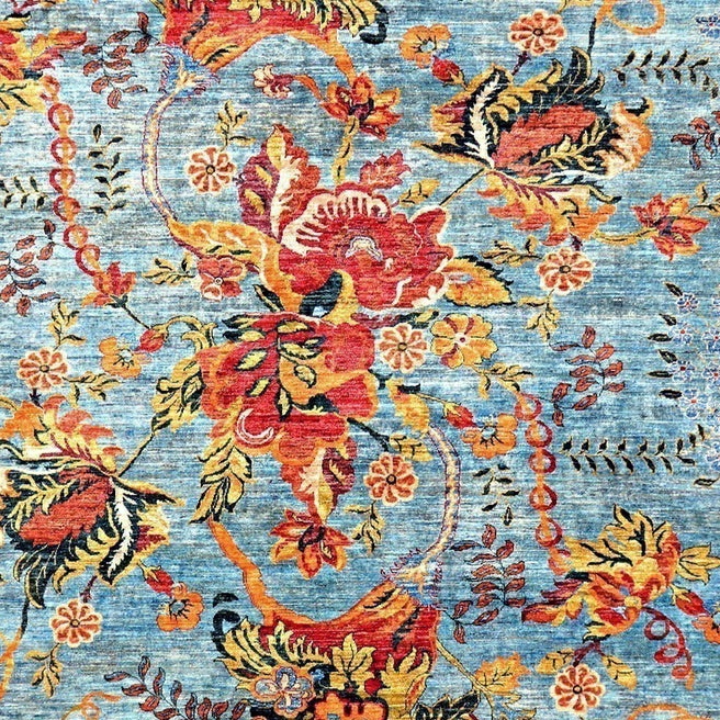The Khurjin Handmade Rug with floral motifs is a beautiful celebration of traditional artistry and natural inspiration. Skillfully handwoven by experienced artisans, this rug features delicate floral patterns arranged within classic geometric frames, creating a perfect balance between tribal heritage and timeless elegance. The rich, multi-toned colors enhance the intricate blooms, adding warmth, depth, and visual charm to any interior.