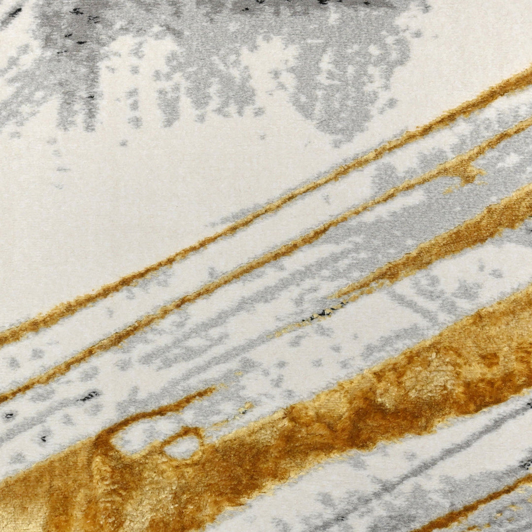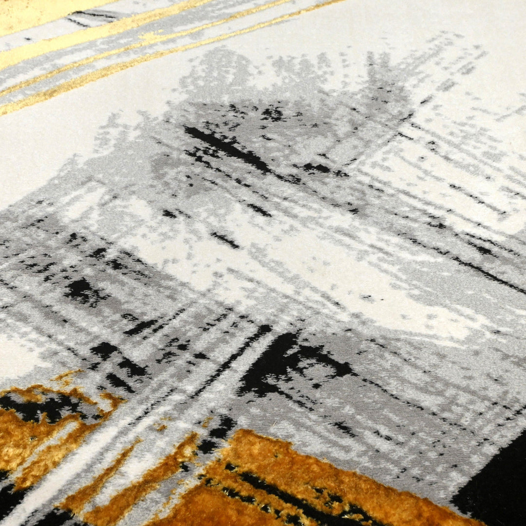 This abstract design rug brings a contemporary artistic flair to any space with its dynamic patterns and flowing forms. The interplay of shapes and colors creates a striking visual statement, making it a focal point in any room.
